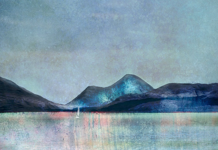 Without a doubt, one of the most popular ranges in the shop has to be Cath Waters atmospheric digital collages of the West Coast of Scotland. Gorgeous and moody, this stunning range captures the wild beauty of the western isles in all it’s rugged realness. The range includes greetings cards and notebooks, prints and blocks, ceramic mugs and coasters as well as melamine table mats, glass work top savers, and new mini chopping boards. About Cath Waters Scottish Landscapes Cath...