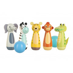 The set contains 5 brightly coloured woodland characters, and 2 wooden balls - kids will have hours of fun knocking...
