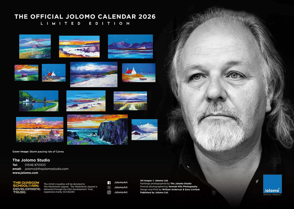 The Official Limited Edition Jolomo Calendar 2026. . Limited Edition, featuring artwork by John Lowrie Morrison OBE. Designed and printed in Glasgow. The artist's royalties are all donated to The Mackintosh Appeal, which continues to raise funds to help finance the restoration of the fire-damaged Glasgow School of Art's Mackintosh...