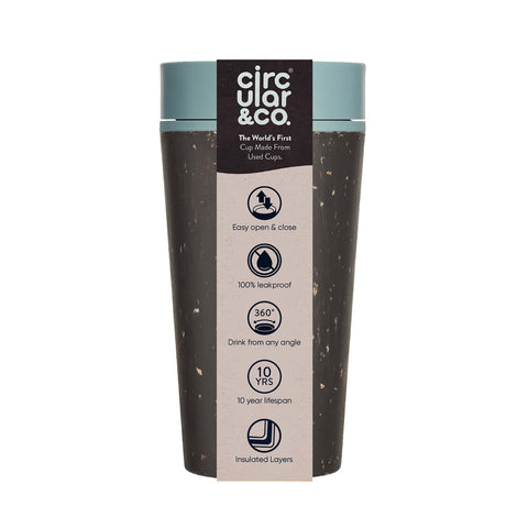 Circular Cup 12oz Black & Faraway Blue. The World’s First Cup Made From Cups. Circular Cups are the world’s first reusable coffee cups, made from recycled single-use paper cups. Designed with practicality and circularity in mind, these sustainable travel mugs aew 100% leakproof, providing peace of mind whilst you’re on...Description