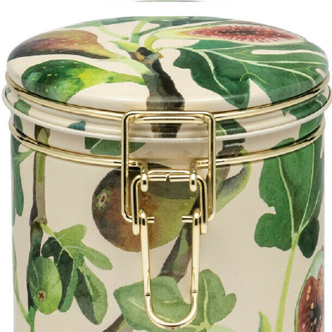 Emma Bridgewater Figs Design Clip Lid Caddy.Made from steel, this caddy is great for storing tea and coffee or anything else that requires an air tight container.
