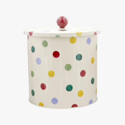 Emma Bridgewater Polka Dot Original Tin Biscuit BarrelThe Polka Dot Biscuit Barrel makes a reassuring sound when putting the lid on to keep all those yummy biscuits fresh - but the keen-eared will also know every time you take off the lid to sneak a biscuit out!