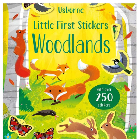 Little First Stickers Woodlands. Author: Caroline Young, Gareth Lucas. Publisher: Usborne. This beautifully illustrated book is packed with woodland scenes to decorate and fill with deer, foxes, squirrels, badgers and more woodland creatures. Children can use the stickers to bring each page to life.