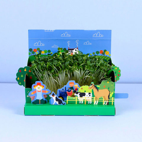 A clever pop-up miniature garden with real cress seeds to grow.. Create a beautiful farmyard garden. Add fruit trees and a scarecrow to your farm and drive the tractor.. Includes all you need to sow and grow your garden in 4 easy steps.. Average grow time 5-7 days. Keep in...