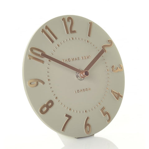 From the Fabulous Mulberry Collection by Thomas Kent ClocksA stylish addition to any mantelpiece, this clock features a muted stone coloured face and eye-catching shiny rose gold raised numerals and hands