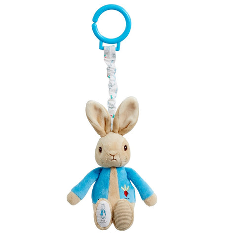 This Peter Rabbit Jiggle toy is fun, tactile and engaging. . The perfect size for little hands to grasp and pull down, then watch them giggle with laughter as Peter jiggles back up! . The Jiggle toy can easily be attached to a pram, car seat or even a cot...