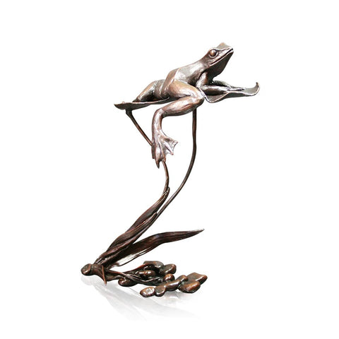 Initially it’s hard to spot, then suddenly the frog moves, and the super camouflage is lost. This lovely design of a Spring Frog is captured by Michael Simpson in an edition of 150 pieces. Bronze is the ideal material to show the delicacy of the lily pad support as it holds the relatively heavy frog.Height: 16cm x Width: 12.5cm x Depth: 6.5cm Weight: 395g