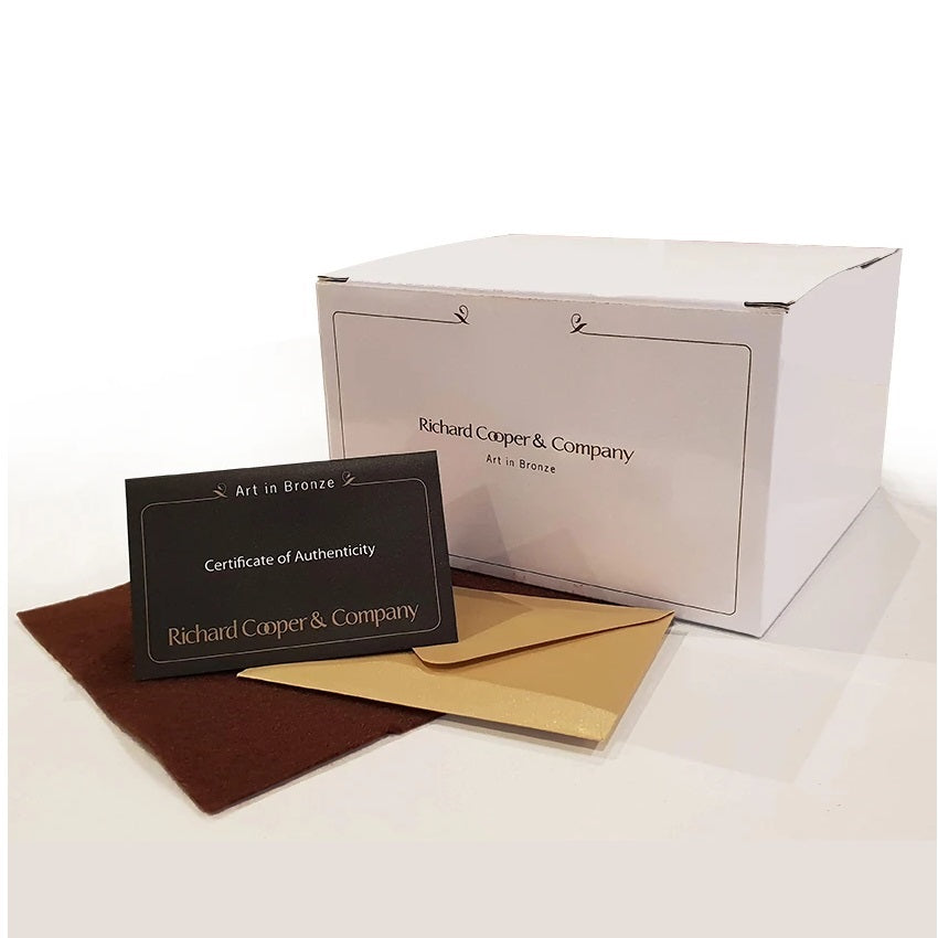 Your bronze is beautifully presented in a printed box containing a signed certificate of authenticity. The bronze is engraved with the sculptor’s signature and limited edition number, matching the certificate enclosed.