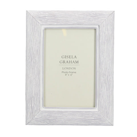A beautiful contemporary style frame featuring a white wash wood effect design from Gisela Graham. Freestanding and may be used in either landscape or portrait format. Suitable for 4x6" photo (10 x 15cm). Dimension: 20.8x15.8x1.8cm. Materials: 100% ResinDescription