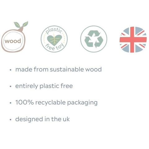 Encourage children to love making music with this fun and colourful wooden otter xylophone.Made from sustainable wood, entirely plastic free, and comes in 100% recyclable packaging.